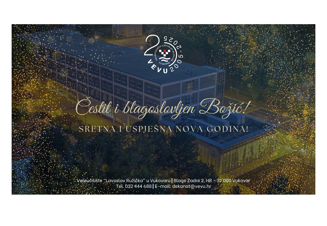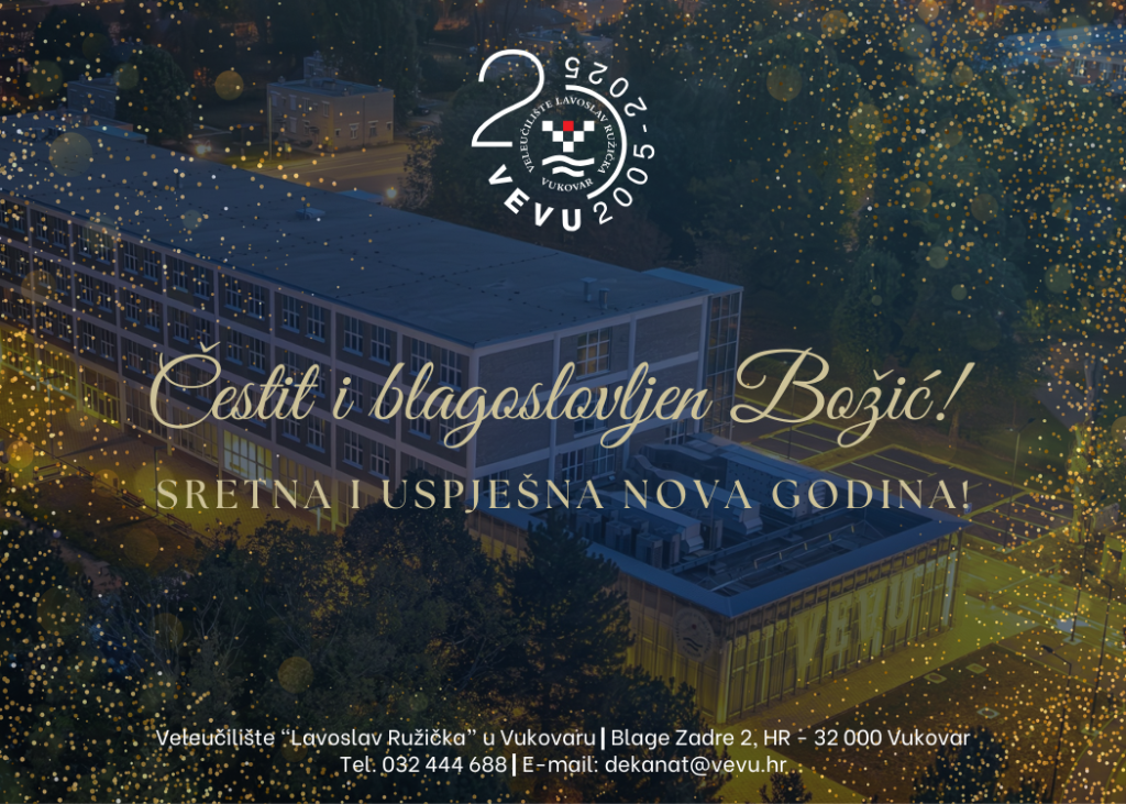 Objavljeno: 24.12.2025. Svim studentima, alumnima, djelatnicima, suradnicima i partnerima želimo razdoblje ispunjeno zdravljem, radošću i blagoslovom, te puno prilika, uspjeha i sreće u Novoj 2026. godini.