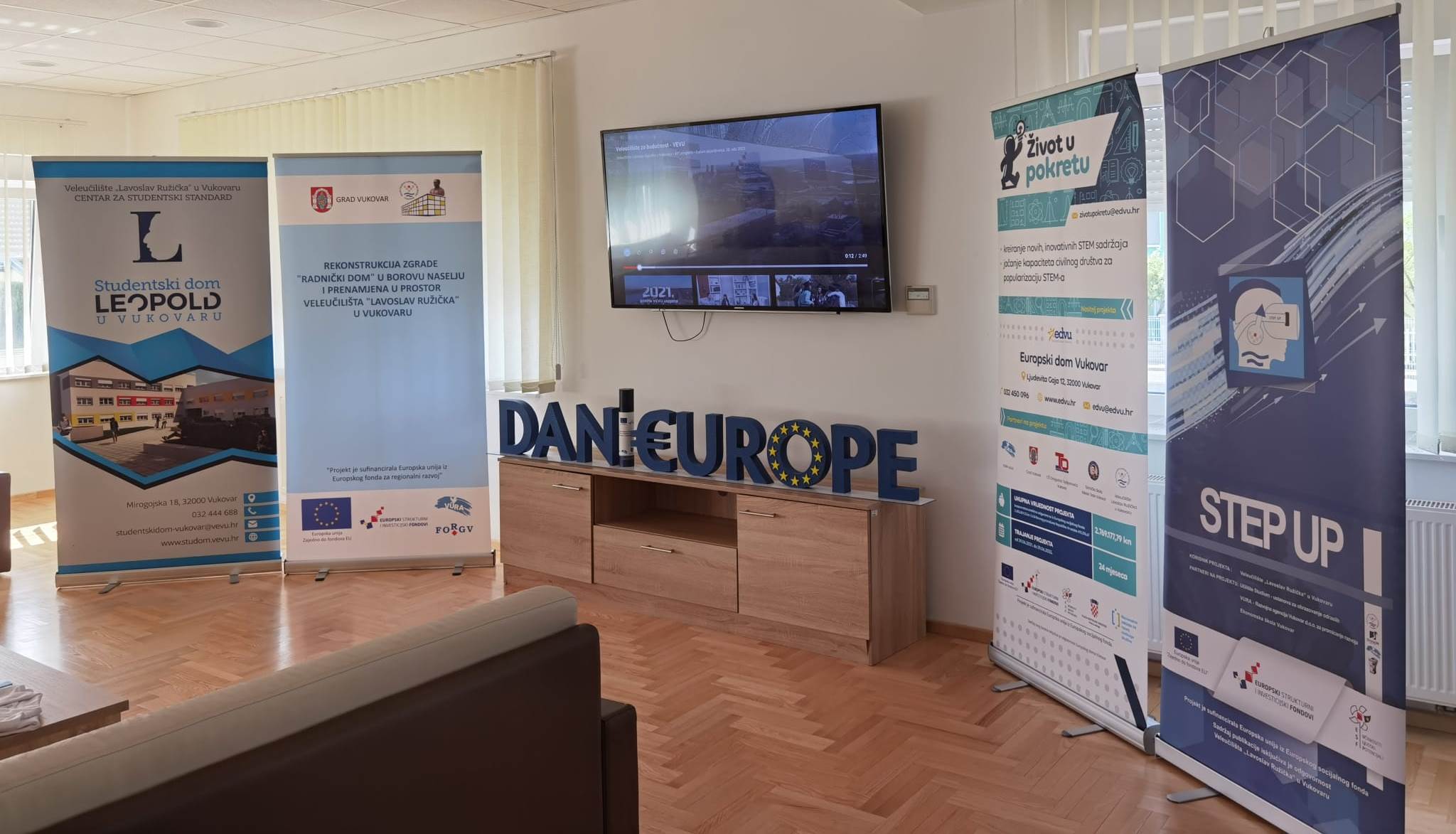 On the occasion of Europe Day, our College and 2nd year students of Commerce in the Student Dormitory “Leopold” in Vukovar hosted the Director of the Directorate for European Territorial Cooperation, Stella Arneri, on May 20, 2022. On that occasion, the dean of the College doc. dr. sc. Željko Sudarić, Ph.D. v. š. and vice dean for business and cooperation with the economy dr. sc. Slobodan Stojanovic, prof. v. š. presented all European projects in which our College participated, whether they were realized or those that are still active. They especially pointed out the projects that will further improve the already excellent standard and quality of student life in Vukovar, such as the coming construction of a kitchen for our students within the Student Dormitory and the renovation of the Workers’ Home in Borovo where our College will soon move to, thereby making room for new study directions as well as the expansion of existing ones. Director of the Directorate for European Territorial Cooperation, Stella Arneri did not hide her satisfaction with the seen and presented projects and offered our Management the assistance of the Directorate for European Territorial Cooperation for all future projects and cooperation. For the 2nd year students of Commerce, the Director presented herself through her business journey and success, important and large projects she worked on, and students through interesting questions and conversation with the distinguished guest about the implementation of development projects in the EU find out everything about European projects and the opportunities they offer young people.