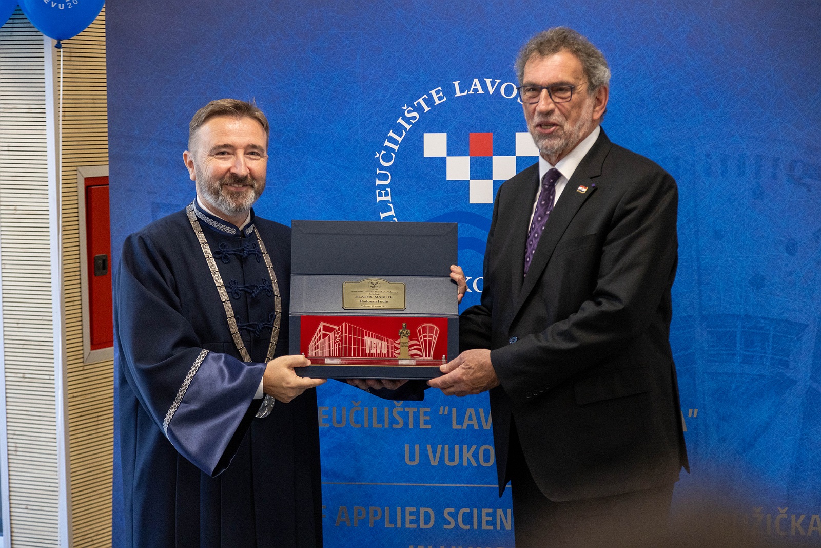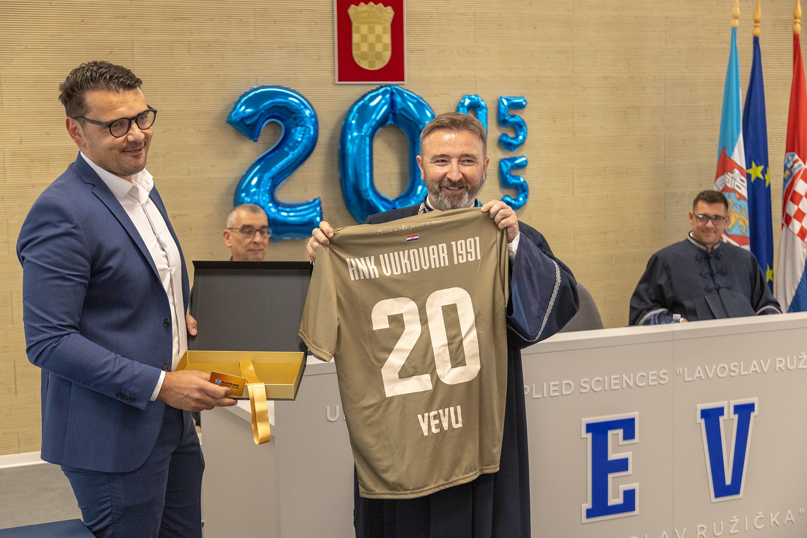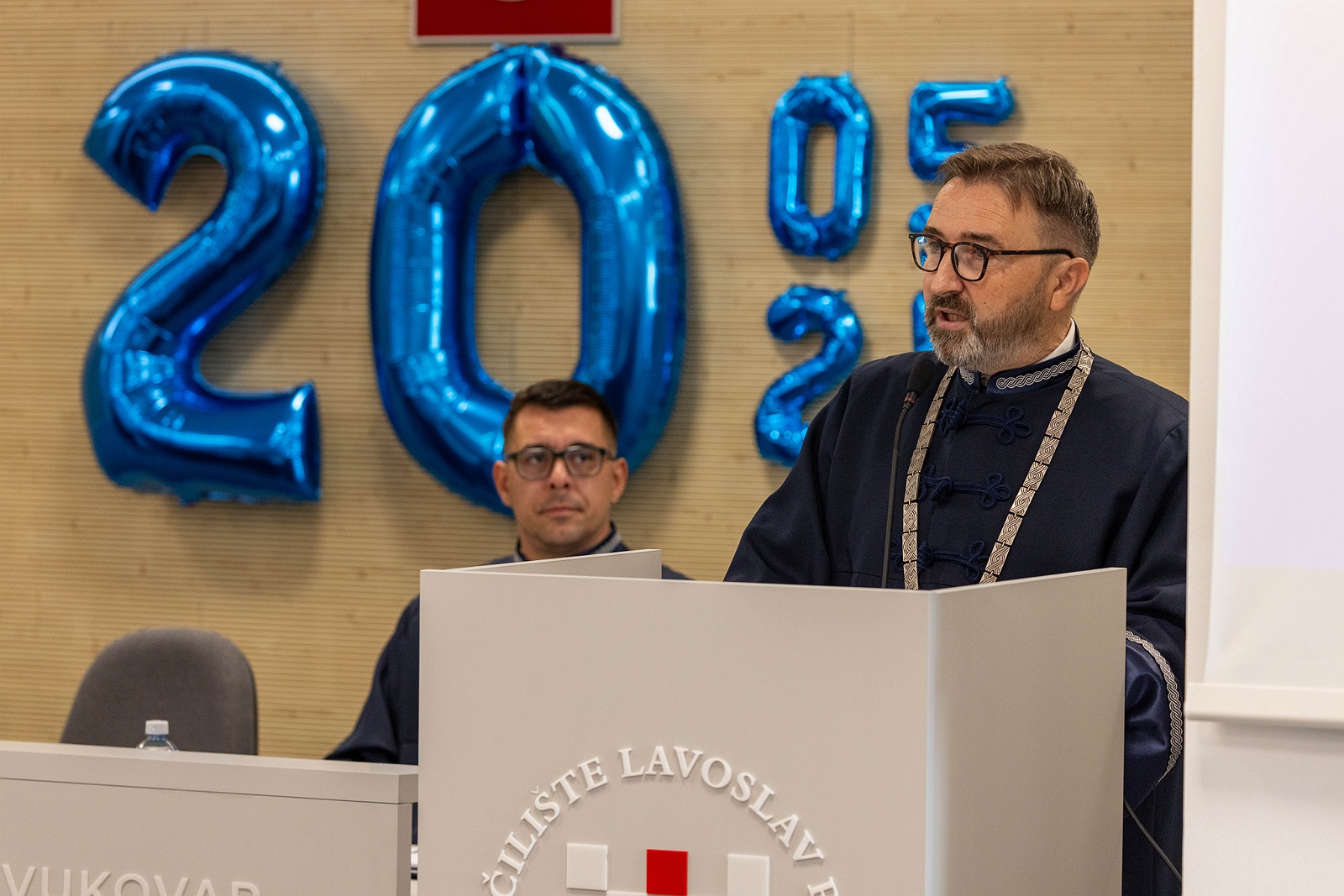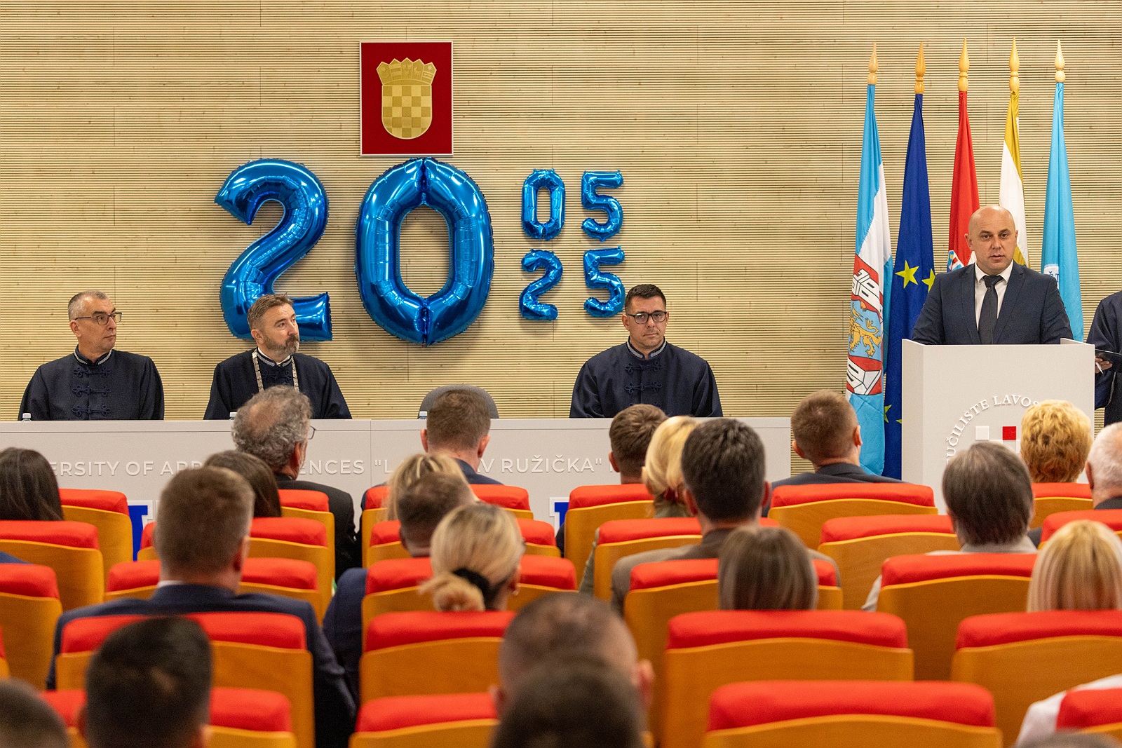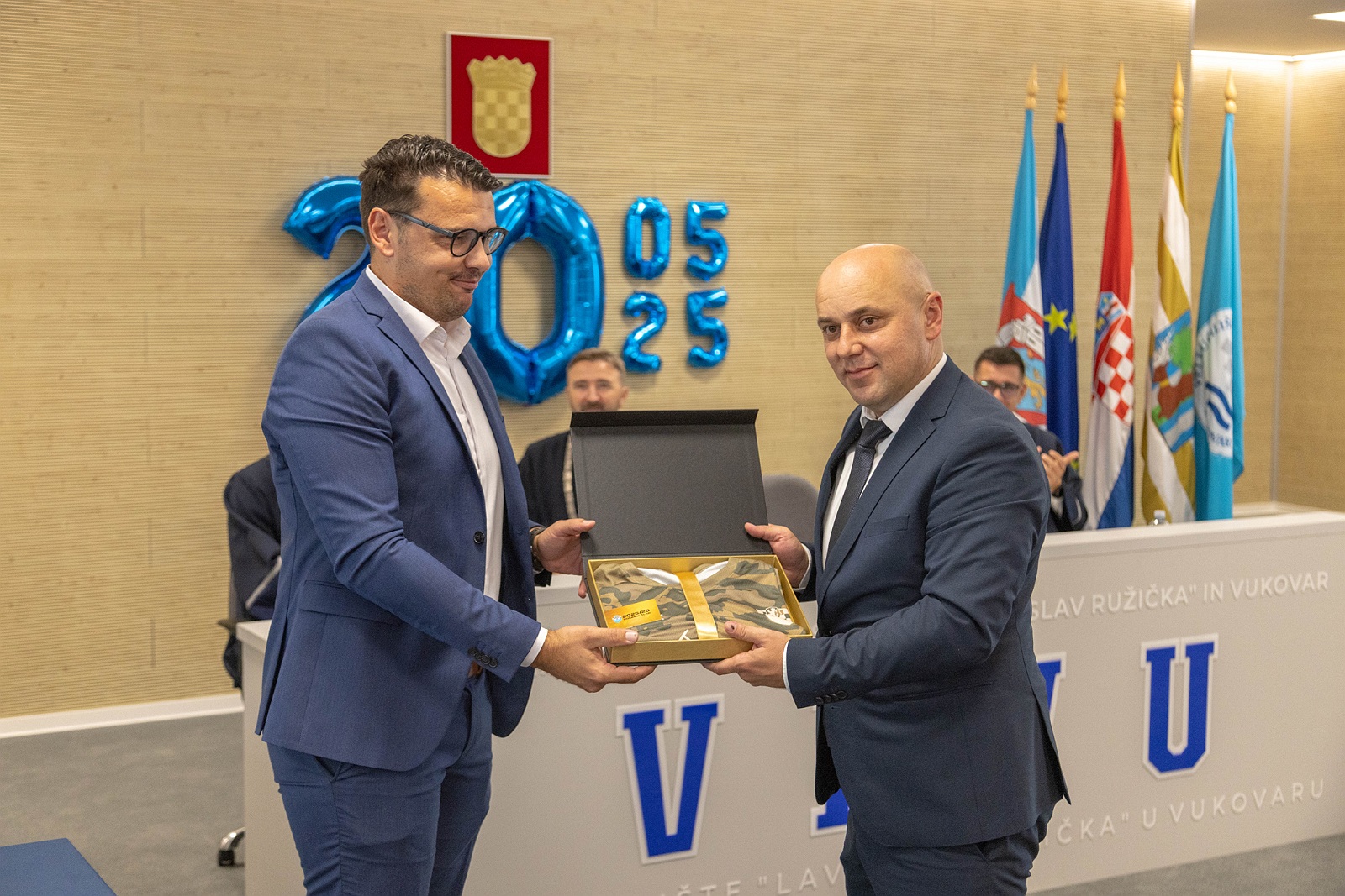 The University of Applied Sciences “Lavoslav Ružička” in Vukovar marked its 20th anniversary on September 20, 2025, with a ceremonial session and the presentation of awards and recognitions. In addition to staff and students, the event was attended by numerous guests from the academic community, representatives of local and regional authorities, as well as the Minister of Science, Education and Youth, Prof. dr. sc. Radovan Fuchs.