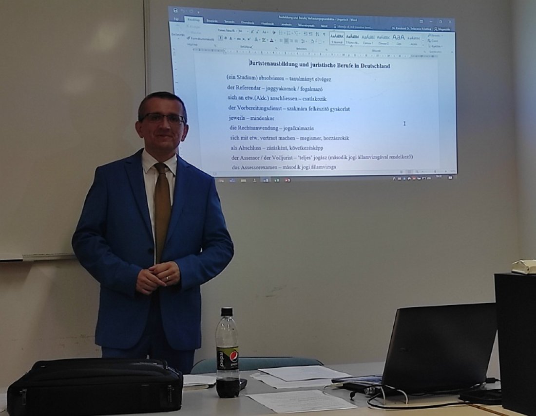 Prošloga tjedna naš je profesor dr.sc. Borislav Marušić, prof. v.š. gostovao kao predavač u sklopu ERASMUS+ razmjene predavača između partnerskih institucija na Pravnom fakultetu u Pečuhu. Tom je prigodom održao seriju predavanja iz njemačkoga jezika pravne struke pod naslovom Juristenausbildung und juristische Berufe in Deutschland i Verfassungsrechtliche Grundlagen der Republik Kroatien. Pravni fakultet u Pečuhu, čija tradicija datira od 1367., predstavlja visokoobrazovnu instituciju s najduljom tradicijom obrazovanja pravnih stručnjaka u Republici Mađarskoj i naš je ERASMUS partner već sedam godina, tijekom kojih je ostvareno nekoliko međusobnih razmjena gostujućih predavača. Predsjednik Katedre za zajedničke predmete je tijekom posjete inicirao buduću suradnju s još jednim fakultetom Sveučilišta u Pečuhu – Fakultetom prirodoslovnih znanosti, na kojem između ostalih djeluje i Odjel za kineziologiju. Realizacijom predložene suradnje kineziolozi s Veleučilišta dobit će mogućnost sudjelovanja u međunarodnoj razmjeni nastavnika na području kineziologije i tako pridonijeti kako svom osobnom profesionalnom razvoju tako i međunarodnoj poziciji Veleučilišta u cjelini.