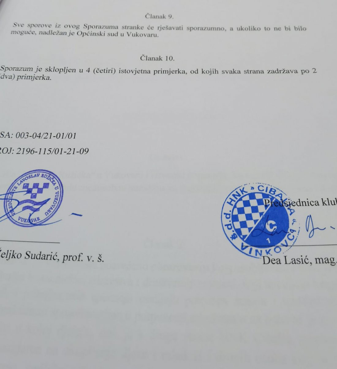 Hrvatski nogometni klub Cibalia Vinkovci i naše Veleučilište prepoznalo je zajedničke ciljeve i interese što je dovelo do potpisivanja novog Sporazuma o suradnji, 15. rujna 2021. godine. Budući da Veleučilište kroz svoj studij Fizioterapije educira i razvija kadar potreban za vrhunski sportske rezultate i oporavak sportaša, a HNK Cibalija ima dugogodišnju tradiciju okupljanja djece i mladih koji se žele baviti sportom nova suradnja omogući će napredak na obostranu korist putem različitih aktivnosti. Jedna od zajedničkih aktivnosti je stručna praksa kojom će prvostupnici Zdravstvenog odjela i studenti diplomskog studija Preventivna fizioterapija u HNK Cibaliji primijeniti svoja praktična znanja te tako doprinijeti sportskom uspjehu Kluba.