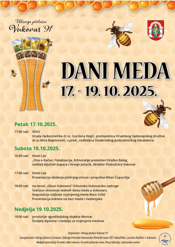 Veleučilište „Lavoslav Ružička“ u Vukovaru, u suradnji s Udrugom pčelara „Vukovar 91“ organizira radionicu „Pčelinji proizvodi u kozmetici“.