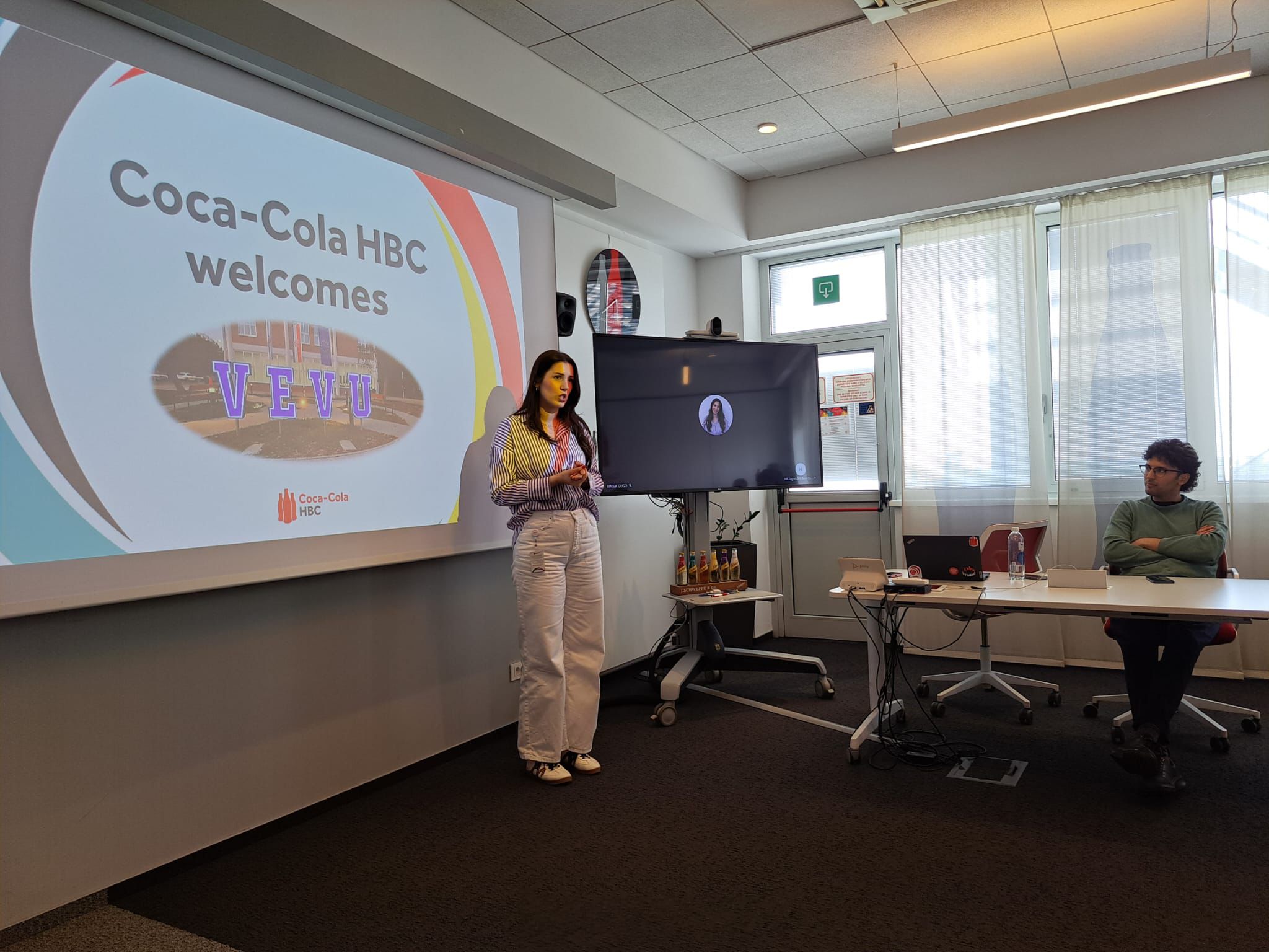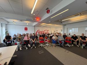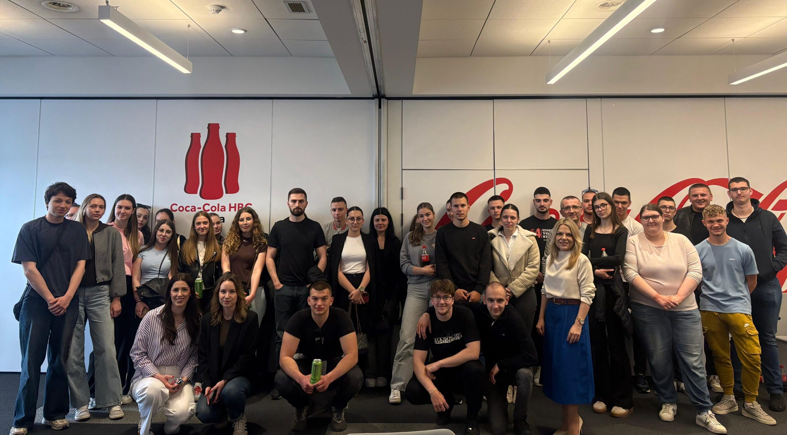 Drugog dana boravka u Zagrebu posjetili smo tvrtku Coca-Cola HBC Hrvatska. Studentice i studenti naša dva studija su se tako iz prve ruke upoznali s poviješću i ustrojem kompanije koja u Hrvatskoj posluje od 1968. godine. Coca-Cola HBC Hrvatska članica je skupine Coca-Cola HBC koja posluje u 29 država i opskrbljuje 715 milijuna potrošača. Glavni je i ovlašteni punioničar i distributer napitaka tvrtke The Coca-Cola Company u ovome dijelu svijeta. Studentice i studenti su imali prigodu posjetiti proizvodni pogon uz pratnju voditelja proizvodnje Daria Bartoloa, dipl. ing., poslušati prezentaciju Tihane Šarić, mag. oec. o najnovijim marketinškim trendovima kompanije i karijerni put Stijepana Petrovića dipl. oec., koji je prije 23 godina započeo rad u podružnici Coca-Cole HBC u Osijeku, a njegova upornost i marljiv rad su ga doveli do pozicije direktora Odjela za jaka alkoholna pića i kavu.
