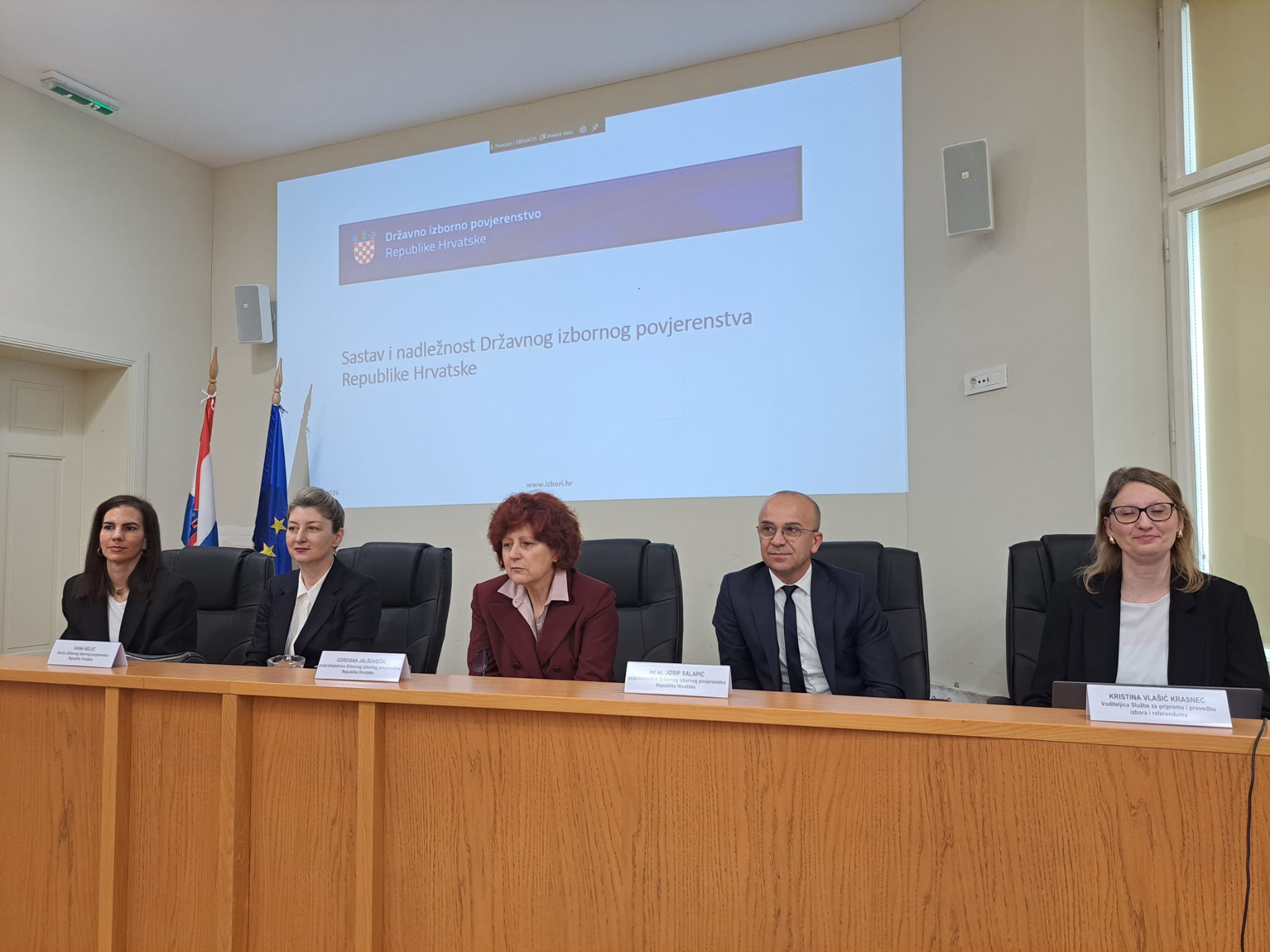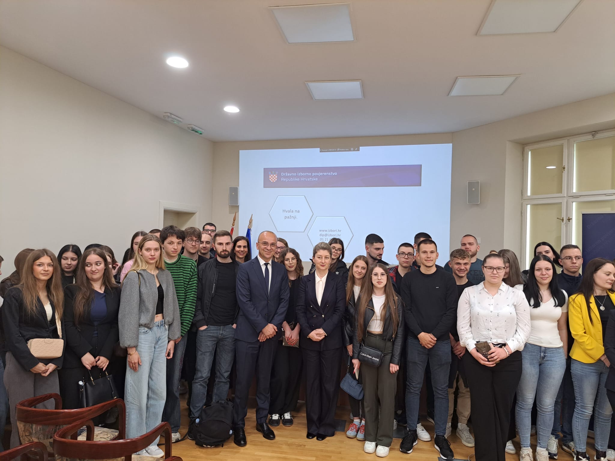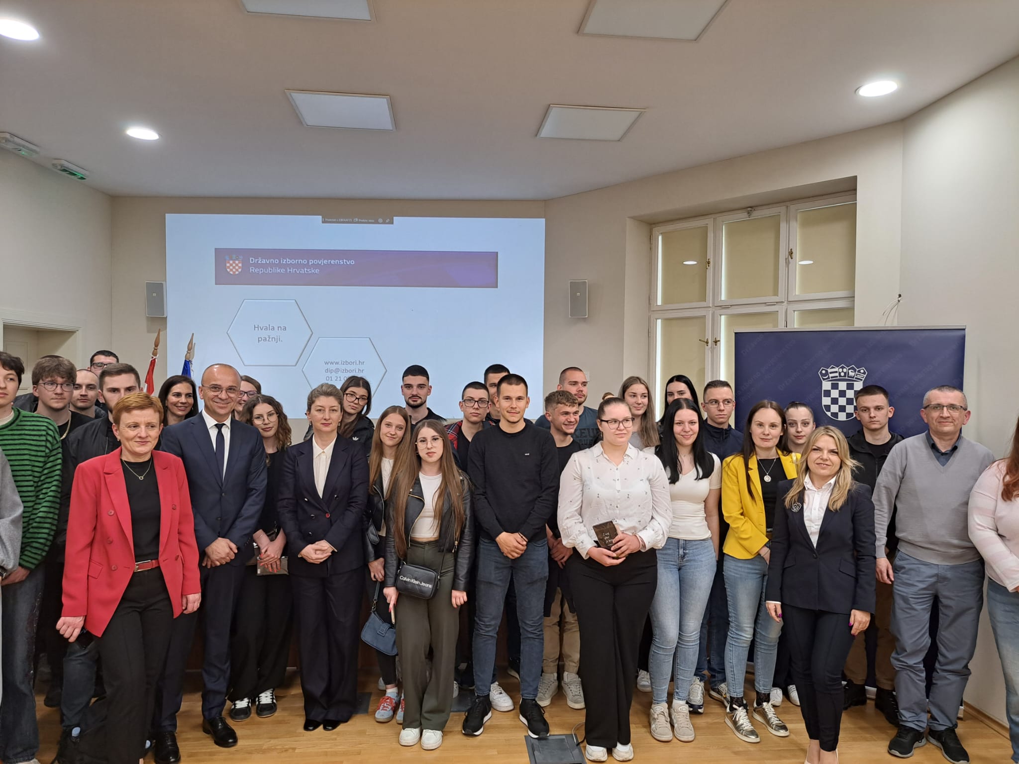 Prvog dana studentskoga putovanja studentice i studenti su zajedno sa svojim mentorima dr. sc. Borislavom Marušićem, prof. struč. stud. u trajnom izboru i Suzanom Dikonić, pred., posjetili Državno izborno povjerenstvo. Potpredsjednici Državnog izbornog povjerenstva Gordana Jalšovečki, mag. iur. i mr. sc. Josip Salapić, članica Državnog izbornog povjerenstva Ivana Belec, dipl. iur. i voditeljica Službe za pripremu i provedbu izbora i referenduma Kristina Vlašić Krasnec, dipl. iur. predstavili su našim studentima činjenice vezane za sastav i nadležnosti Državnog izbornog povjerenstva. Nadležnosti DIP-a protežu se od organizacije i nadzora parlamentarnih, predsjedničkih i lokalnih izbora sve do organizacije i nadzora nacionalnih i lokalnih referenduma. Povjerenstvo je također odgovorno za nadzor financiranja političkih aktivnosti i kampanja, a sudjeluje i u promatračkim misijama na izborima u državama članicama Europske unije.