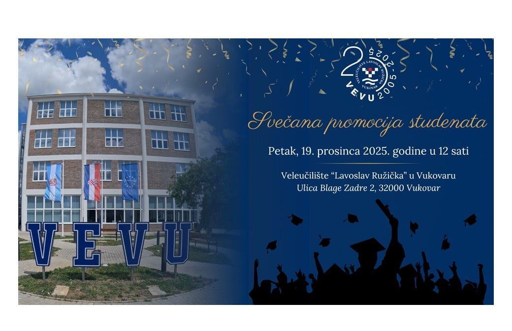 Promocija će se održati u petak, 19. prosinca 2025. godine u 12.00 sati, na adresi Blage Zadre 2, 32000 Vukovar (Konferencijska dvorana Veleučilišta).