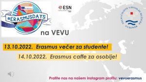 VEVU Studentsku Erasmus+ večer ove godine organiziramo 13. listopada 2022. godine s početkom u 17.00 sati